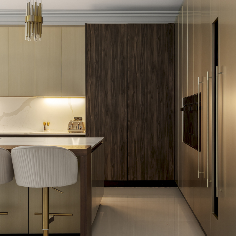 Each of the five bedrooms has been designed as a genuine retreat, with soft, tactile finishes, panelled headboards, antiqued mirrored detailing and sculptural pendant lighting delivering a hotel-suite sensibility throughout.